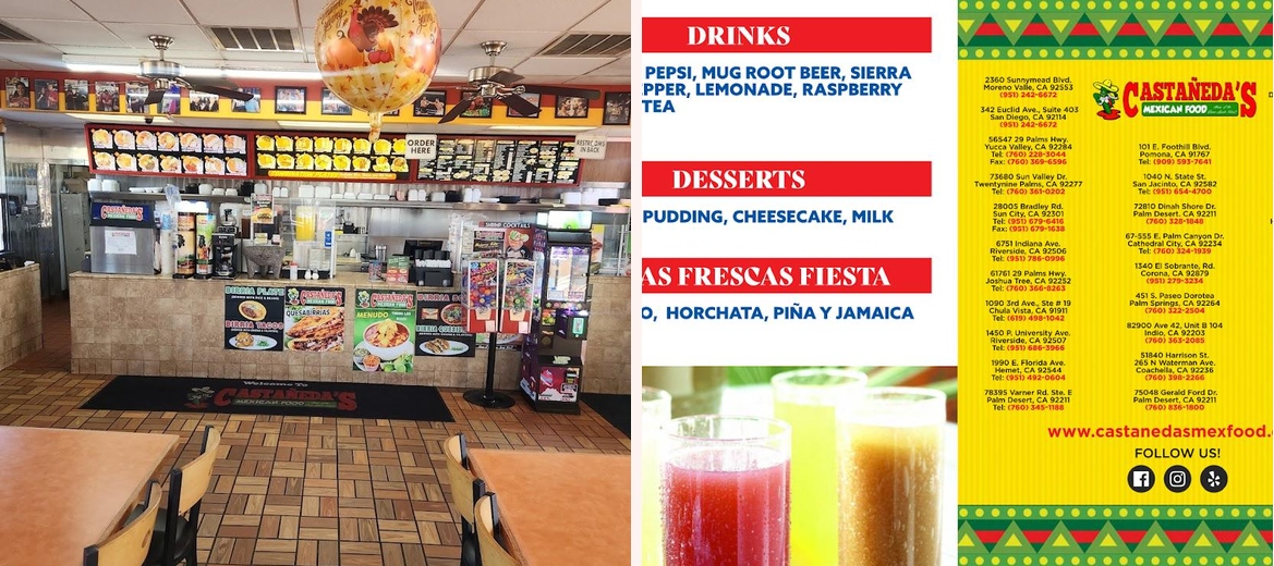 Castañeda's Mexican Food features an extensive menu with over 150 unique plates that cater to all tastes. Signature offerings include the California burrito and tacos estilo Tijuana, both recognized for their generous portions and bold flavors. Vegetarian and seafood options, such as shrimp tacos and ceviche tostadas, ensure that every palate is satisfied. Breakfast lovers can dive into hearty plates featuring chorizo and eggs or mouthwatering breakfast burritos available all day. Crunchy taquitos and flavorful nachos are perfect for quick bites, while enticing combination plates and desserts like flan and cheesecake sweeten the deal. Popular local specialties like carne asada fries and menudo create a true taste of Mexican comfort food. Diverse side orders complement the main dishes, allowing diners to create the perfect meal. Families can find kid-friendly meals here, making it an ideal dining destination for all generations.